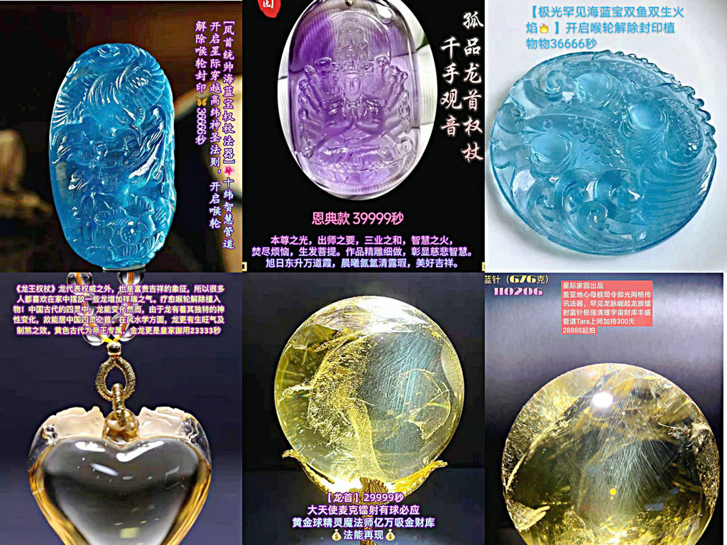 2021年上半年,上师要拍卖她在做公益临终关怀个案中用过的一个黄金球水晶。拍卖方式就是,有意向者直接转10万保证金,然后会员自己出价,出价最高者、转款速度最快者获得。本来是一件法器宝贝,最后竟然拍出去了十件,上师直接推出十件法器给到交保证金者去链接。十件上师用过的水晶,指定链接给了具体会员,直接收入五六百万,恐怕是当下哪一个灵修平台都无法企及的……